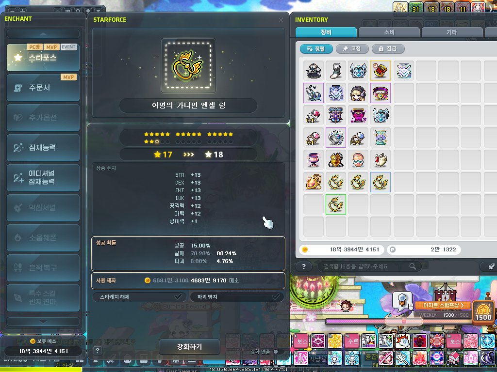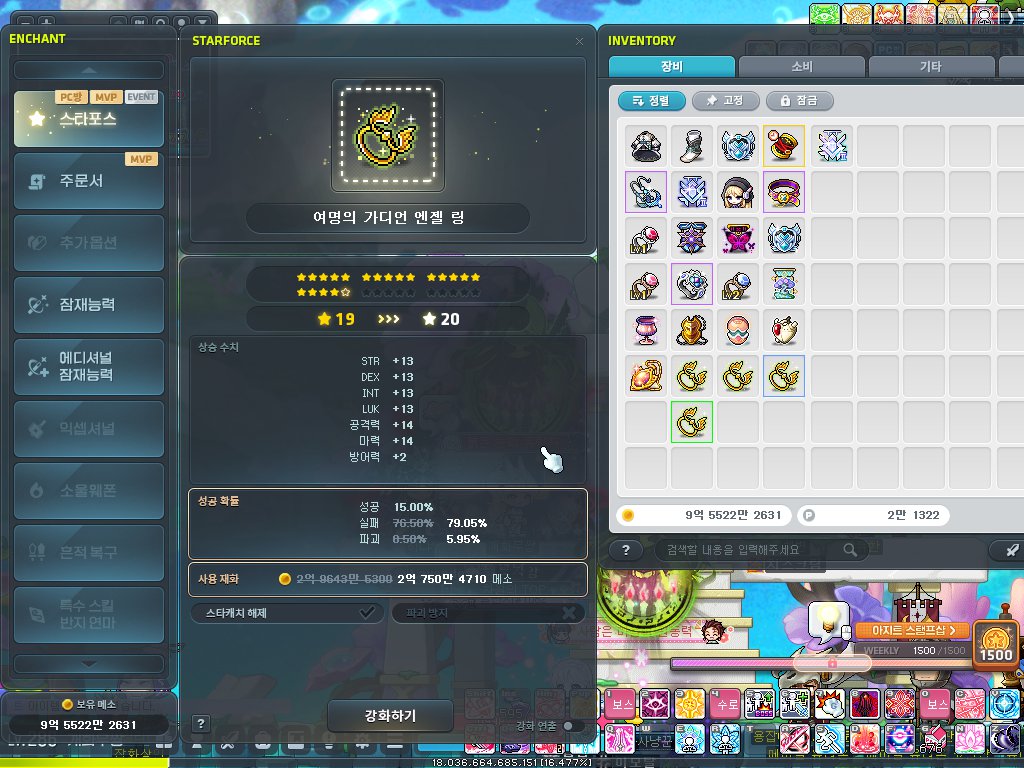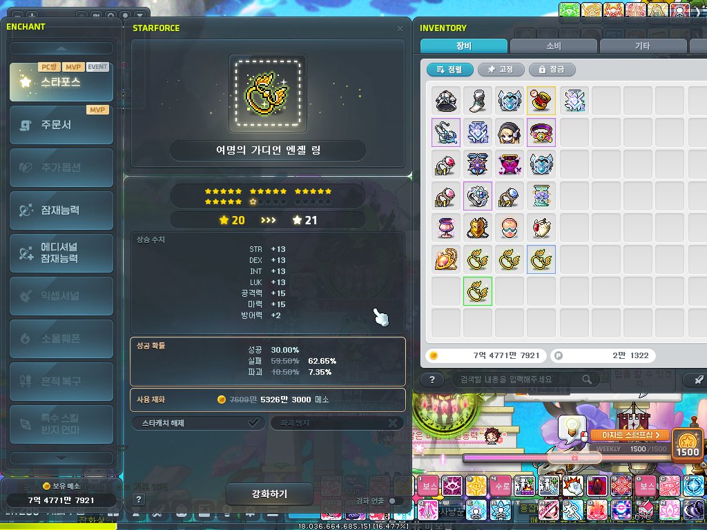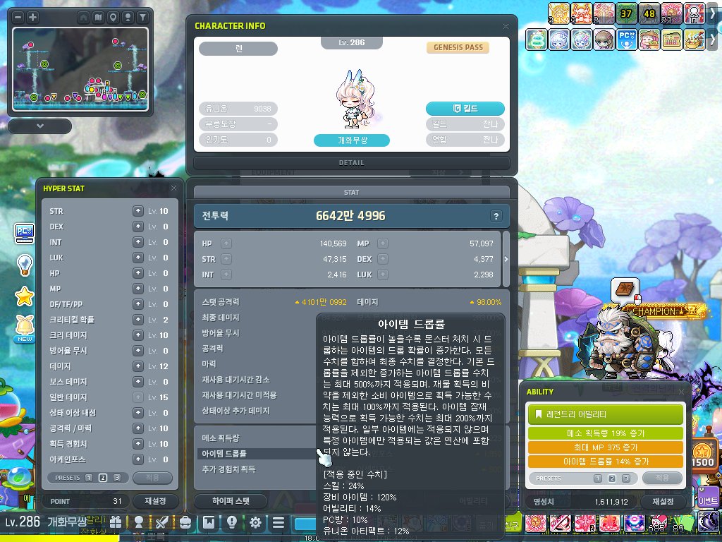 그래도 메이플은 하루에 30분이라도 사냥하고 잤기에 스펙은 여전합니다.