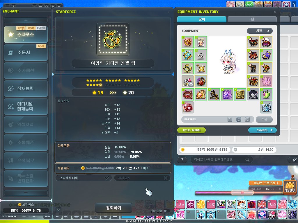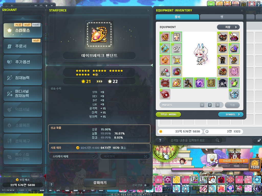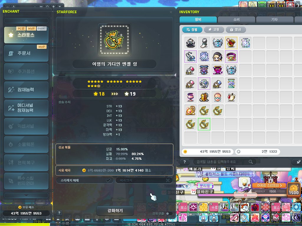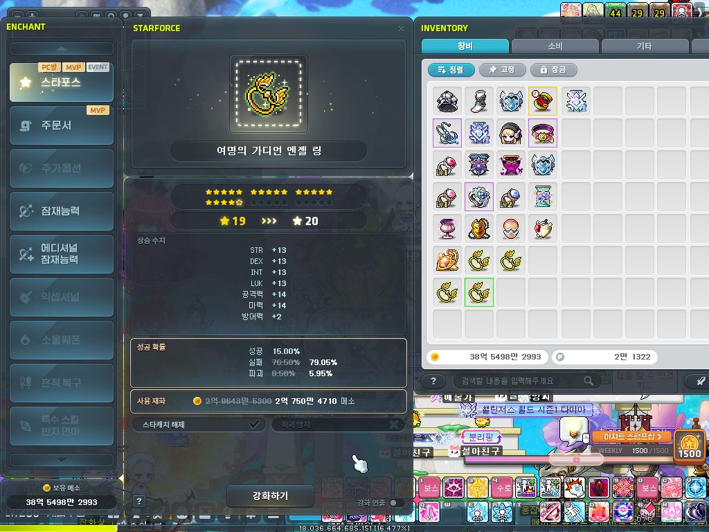 그래도 메이플은 하루에 30분이라도 사냥하고 잤기에 스펙은 여전합니다.